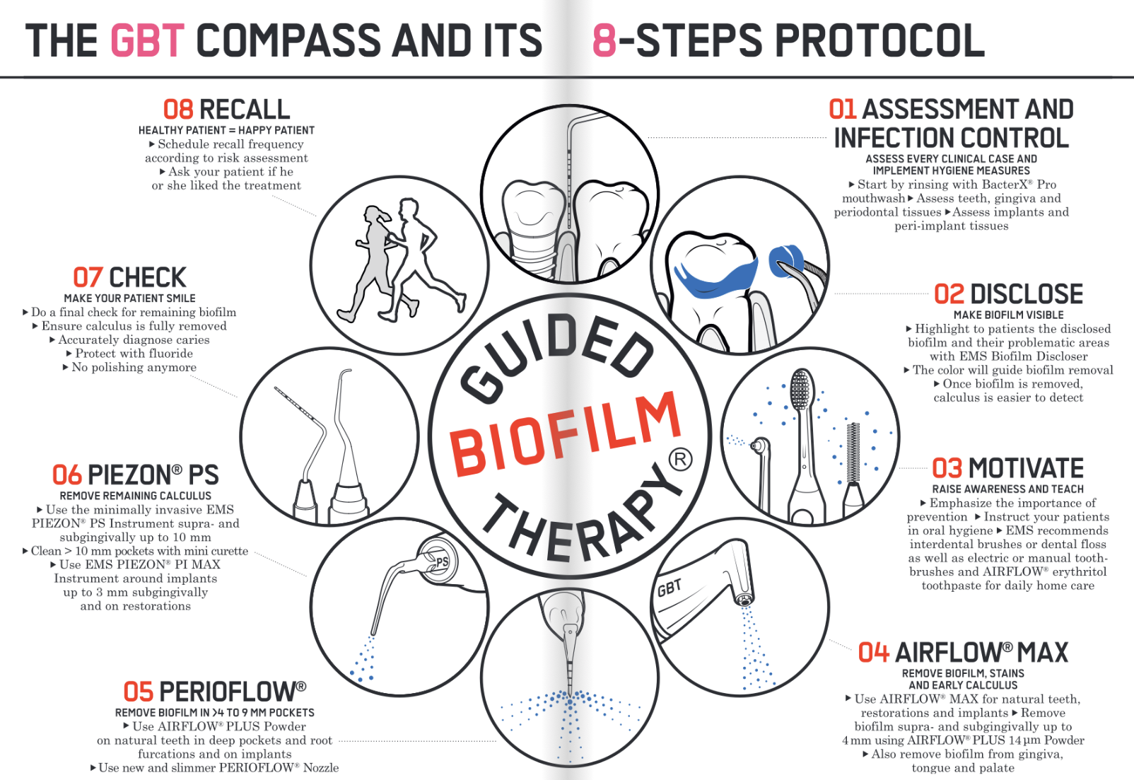 GBT je systematické ošetření, určené k odstranění biofilmu a udržení zdravých zubů během života. Může být prováděno u všech věkových skupin a typů pacientů.